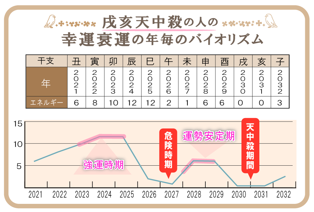 戌亥天中殺の2025年以降の幸運衰運の年毎のバイオリズム