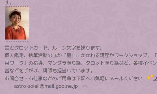 | ホームページ | https://blog.goo.ne.jp/astro-soleil/ | ||