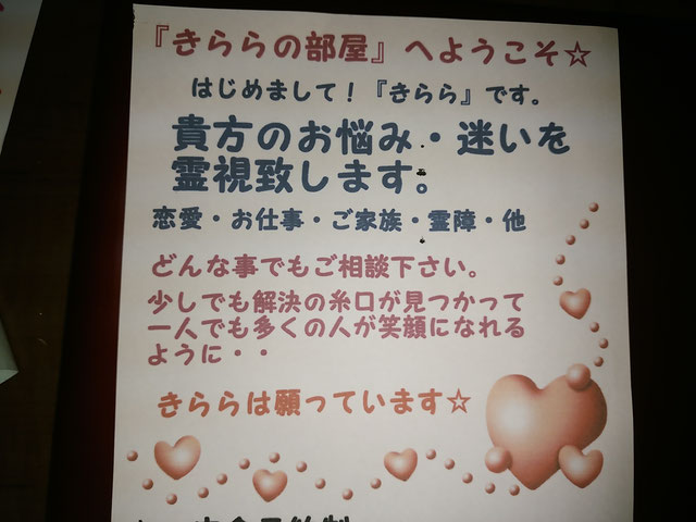 こちらを経営している占い師さんはきらら先生とおっしゃりますが、スピリチュアルカウンセラーであり霊能者です。