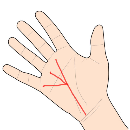 とても珍しい手相で、もし左手にあれば、生きながらにしてラッキーな人、困りごとを抱えにくい人であるとも言えます。