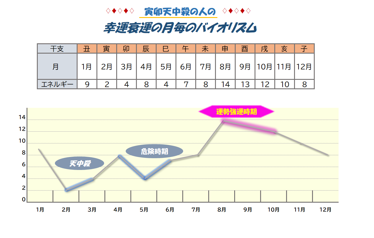 出来ることが増え、行動を起こしても不安を感じなくなる年は、高い運気で安定していると言えます。
