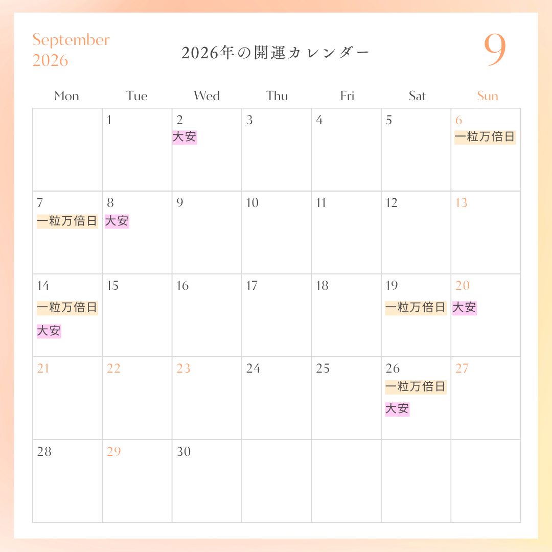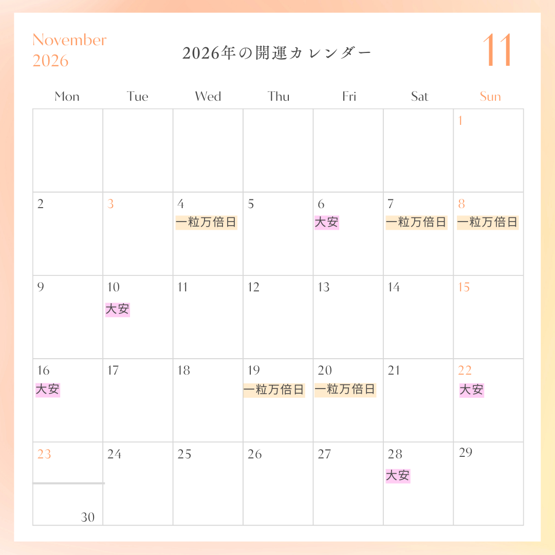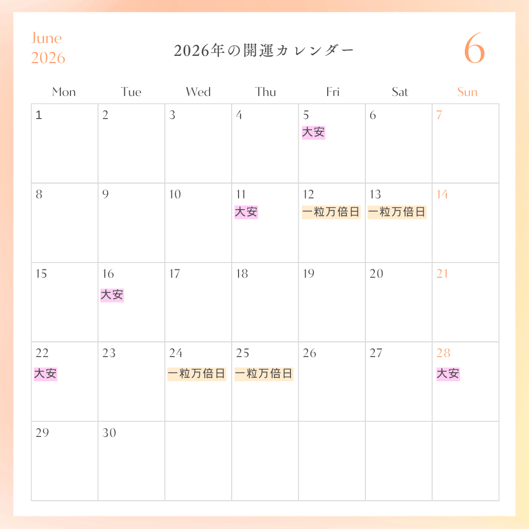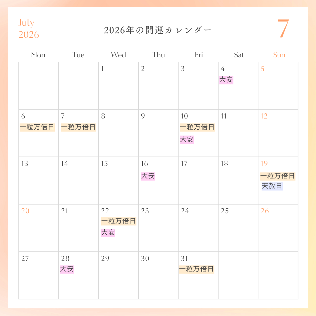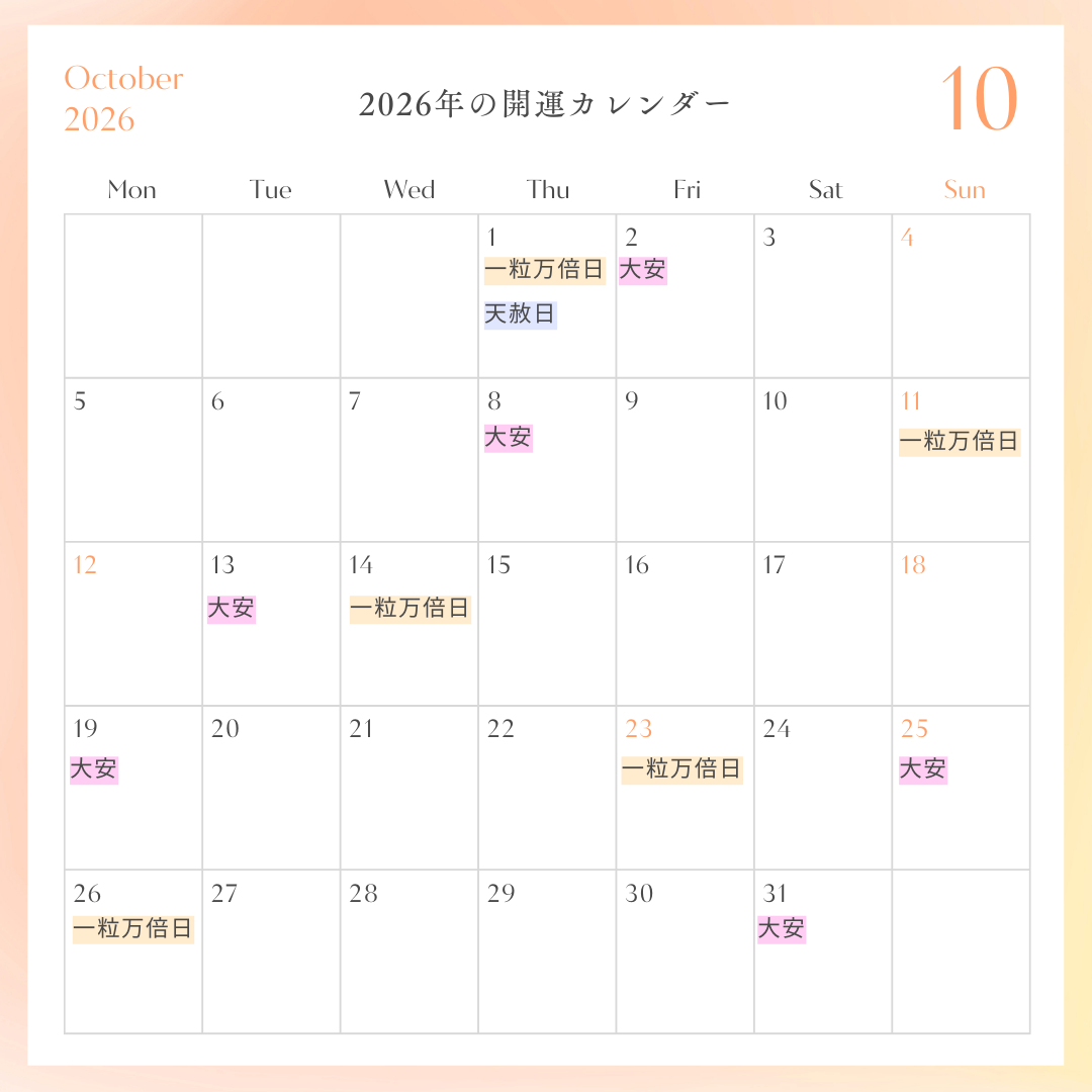 2026年の最強開運日カレンダー|一粒万倍日・天赦日・大安など