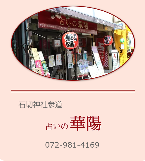石切神社西隣にある占い館だと分かりやすい外観と、お店の外にも占い情報が書かれた看板などがたくさん出ているので、初めて訪れる方も見つけやすいはずです。