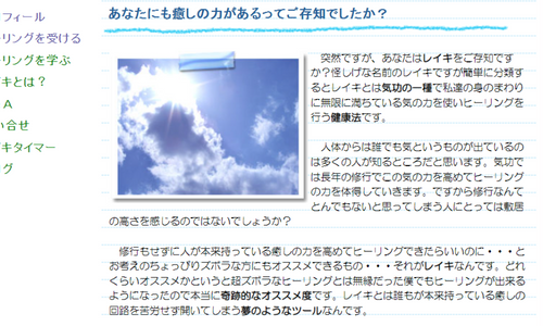「心を癒してくれる先生ですっかりはまってしまいました。マッサージだけではなく、レイキという体の気の巡りを改善してくれる施術もとても気持ちよいです。