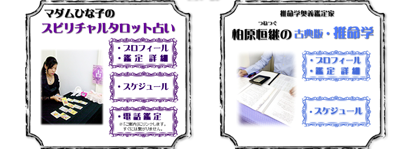 | 鑑定料 | ・対面相談:60分/10,000円 ・電話相談:60分/5,000円 | ||