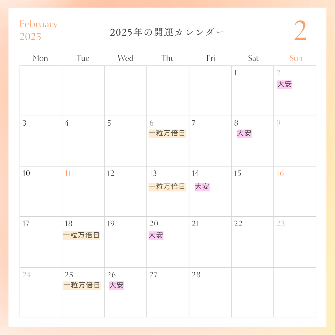 「2025年に入籍を考えている」「結婚生活をスタートさせるなら最強開運日がいい!」という方におすすめです。