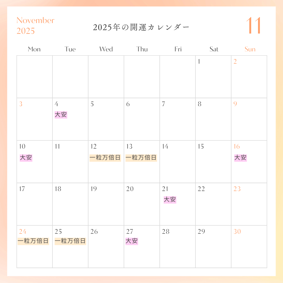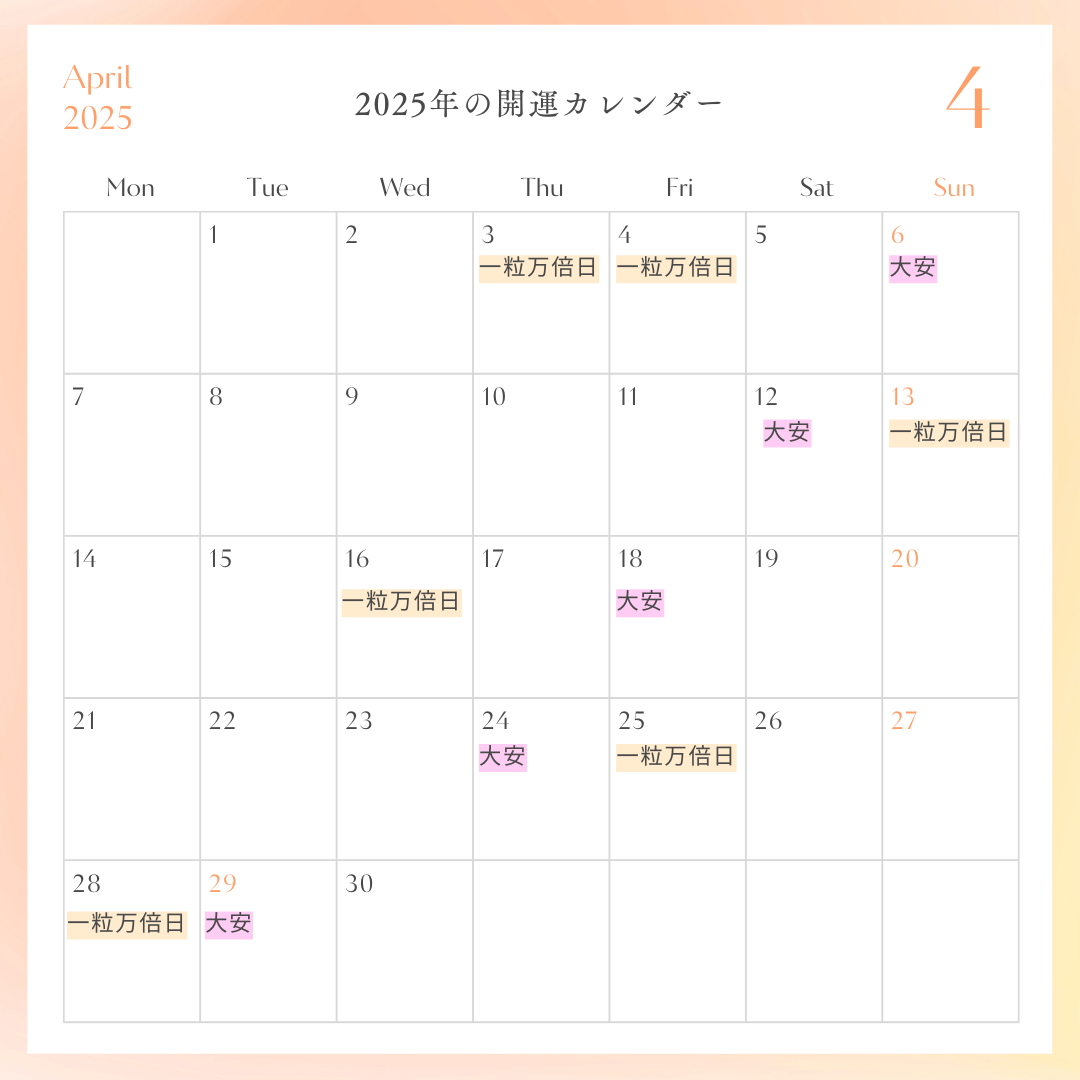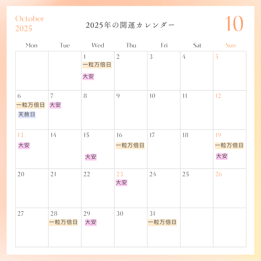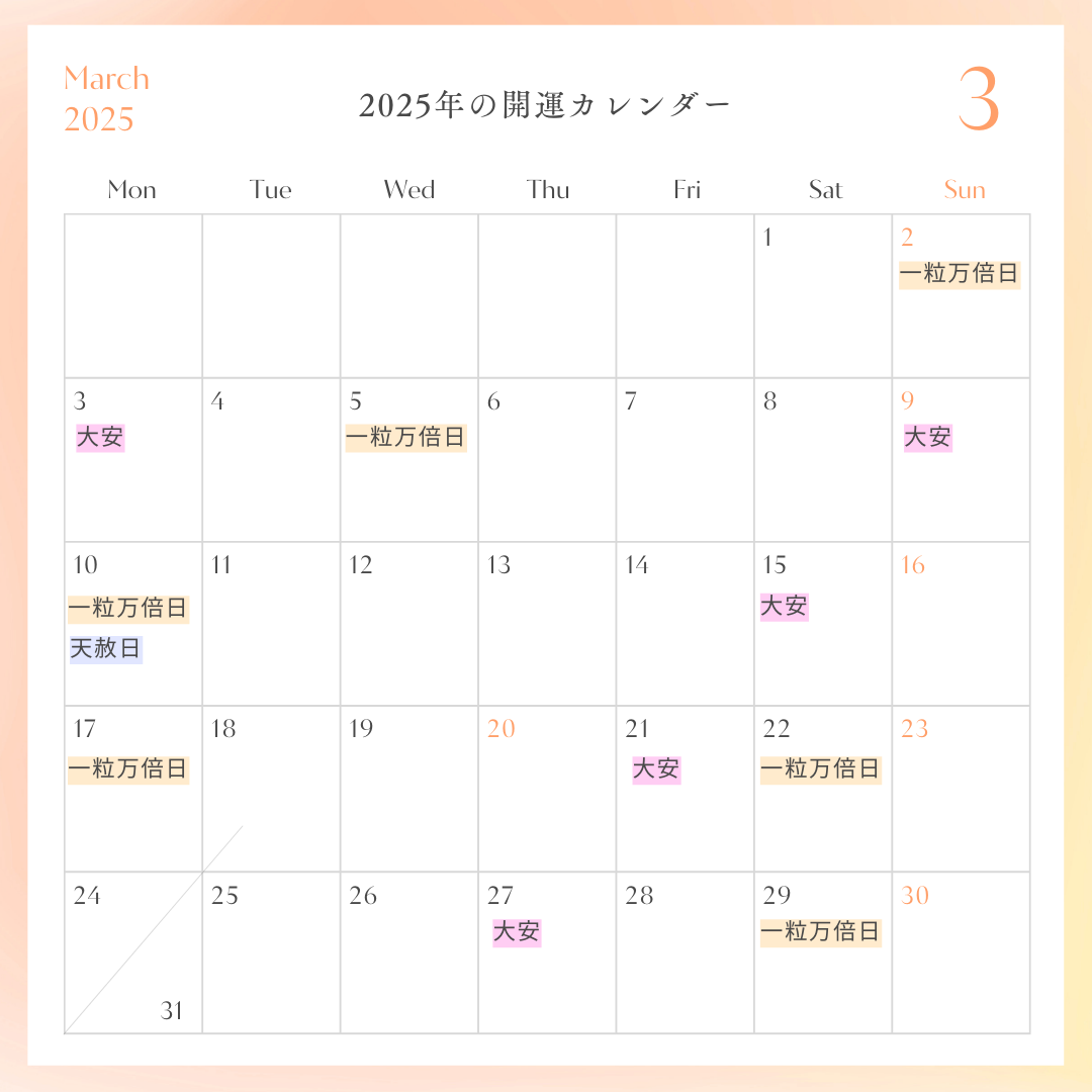 一粒万倍日や天赦日や大安などの特徴を考慮し、開運カレンダーを活用して選んでいきましょう。