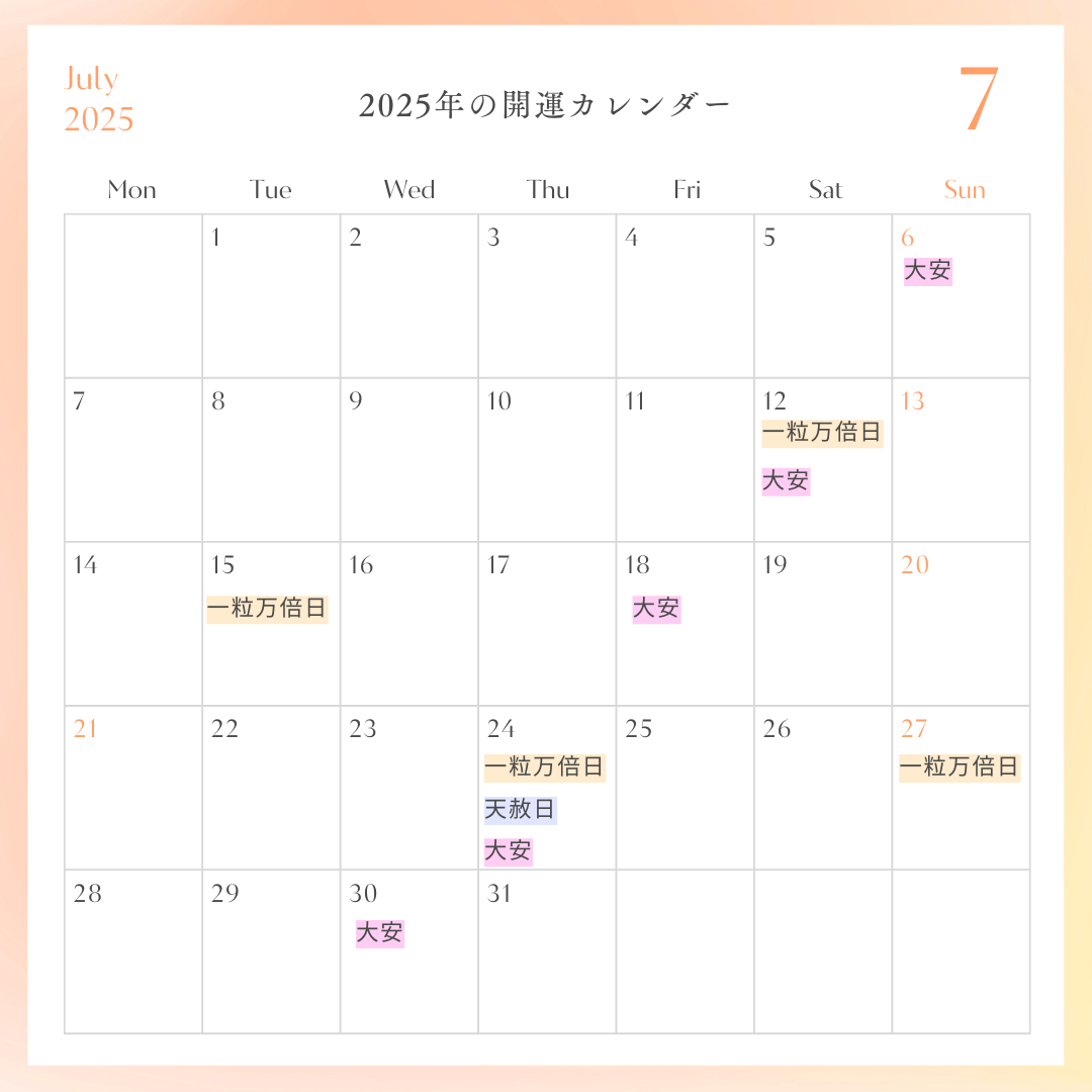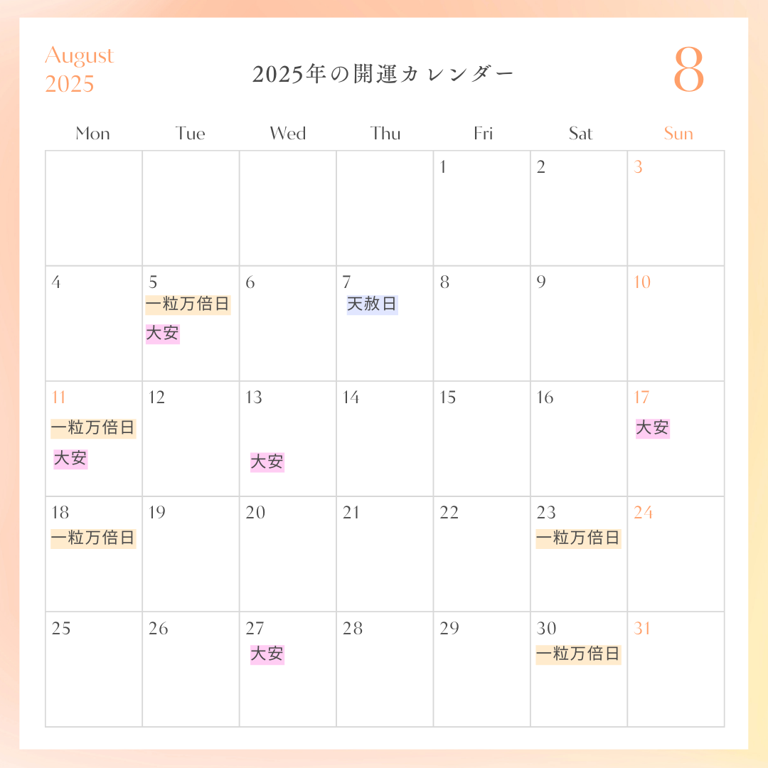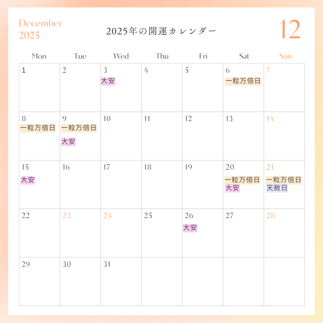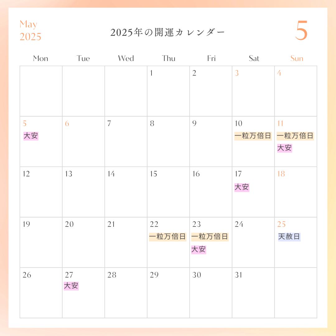 2025年の一粒万倍日と天赦日