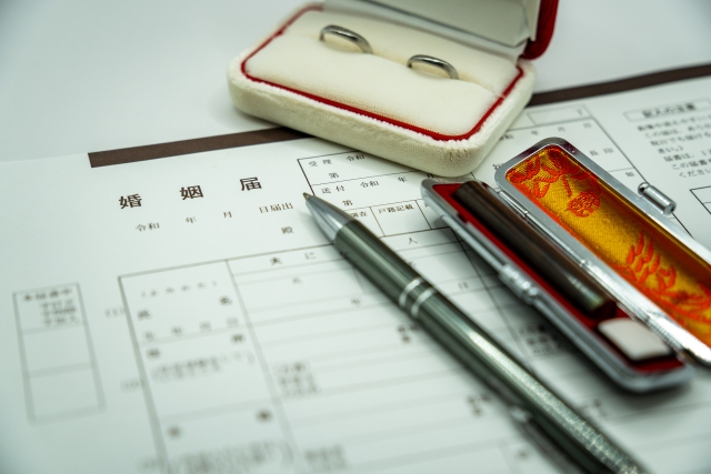 婚姻届けの提出と共に「戸籍抄本」「印鑑」「本人確認書類」「ペン」を準備します。