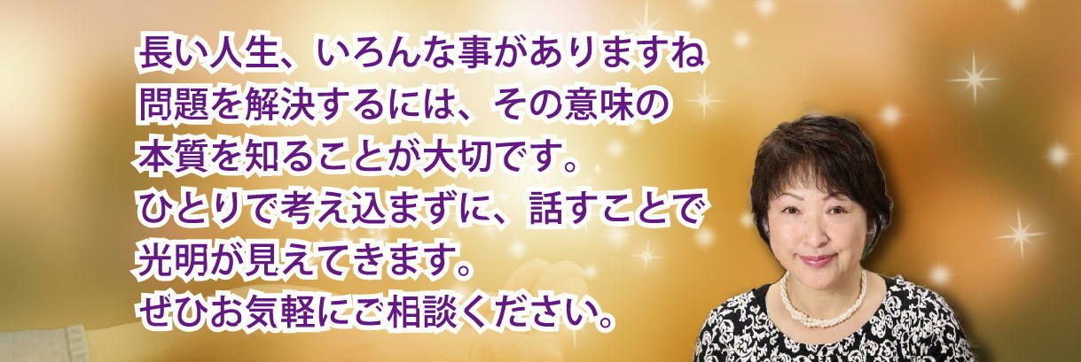 恋愛から縁結び、人間関係、家庭や夫婦の問題、引っ越し、仕事、健康などに加えて霊的な相談に乗ってくれる先生です。