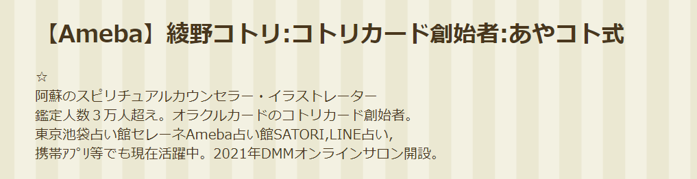 初心者の方へのコンテンツも充足していて、占いに対して不安を感じている方や綾野コトリ先生のことを知りたい方におすすすめのブログです。