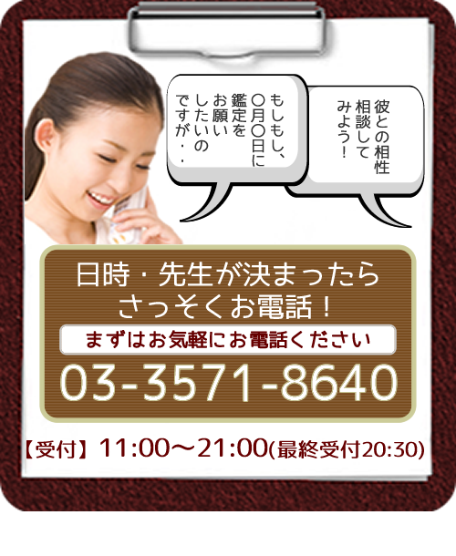 中には、一年に一度訪れ、それまでの決算として鑑定を受け、今後の一年について知る目的を持っている方もいらっしゃいます。