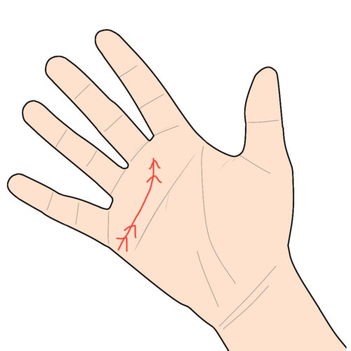 感情線が上向きになっている場合、中指と人差し指の股の間に入り込んでいる方もいらっしゃいます。