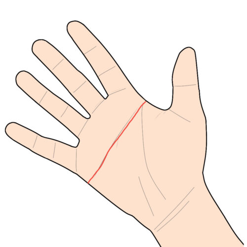 ますかけ線は、頭脳線(知能線)と感情線が一本に繋がってみえる相を指します。