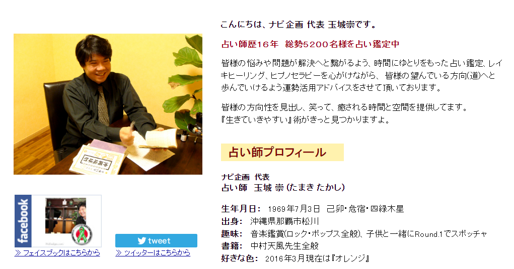 | 公式ホームページ | 沖縄の占い師 玉城崇 | ||
