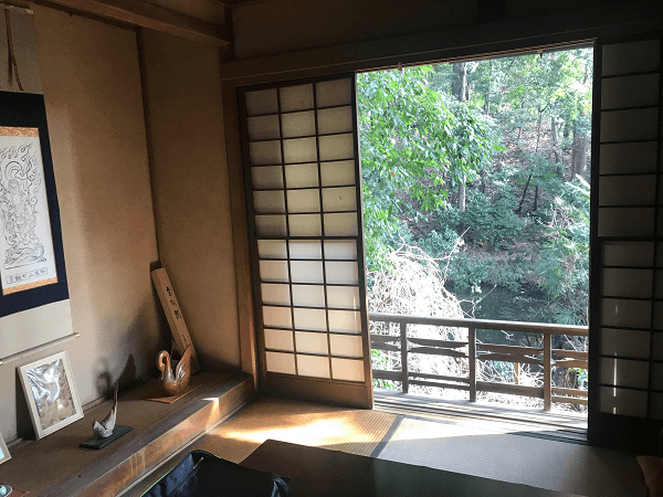眼下には、龍神の池がみえ、閑静なお茶室が特徴的です。