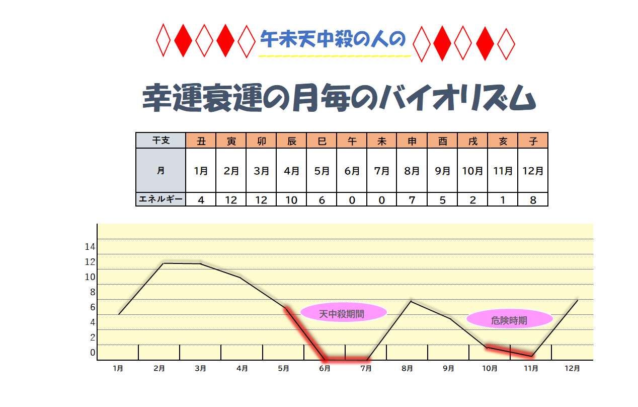 午未天中殺の2025年の幸運衰運の月毎のバイオリズム