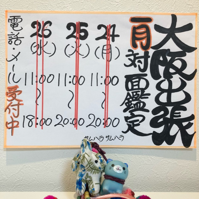 | 鑑定料金 | ・10分お試しコース:1,500円+税 ・20分ライトコース:3,000円+税 ・30分スタンダードコース:4,500円+税 ・40分ヒーリングコース:6,000円+税 ・延長:10分/1,500円+税 |