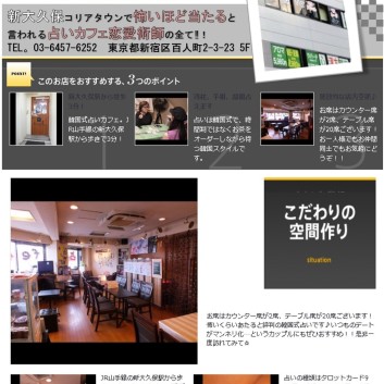 | 住所 | 【幸運占館1号館】 〒169-0073 東京都新宿区大久保1丁目12-6 ドン・キホーテ敷地内イケメン通り沿い 【幸運占館2号館】 〒169-0073 東京都新宿区大久保1-16-30 イケメン通りザビューティーショップ横 |