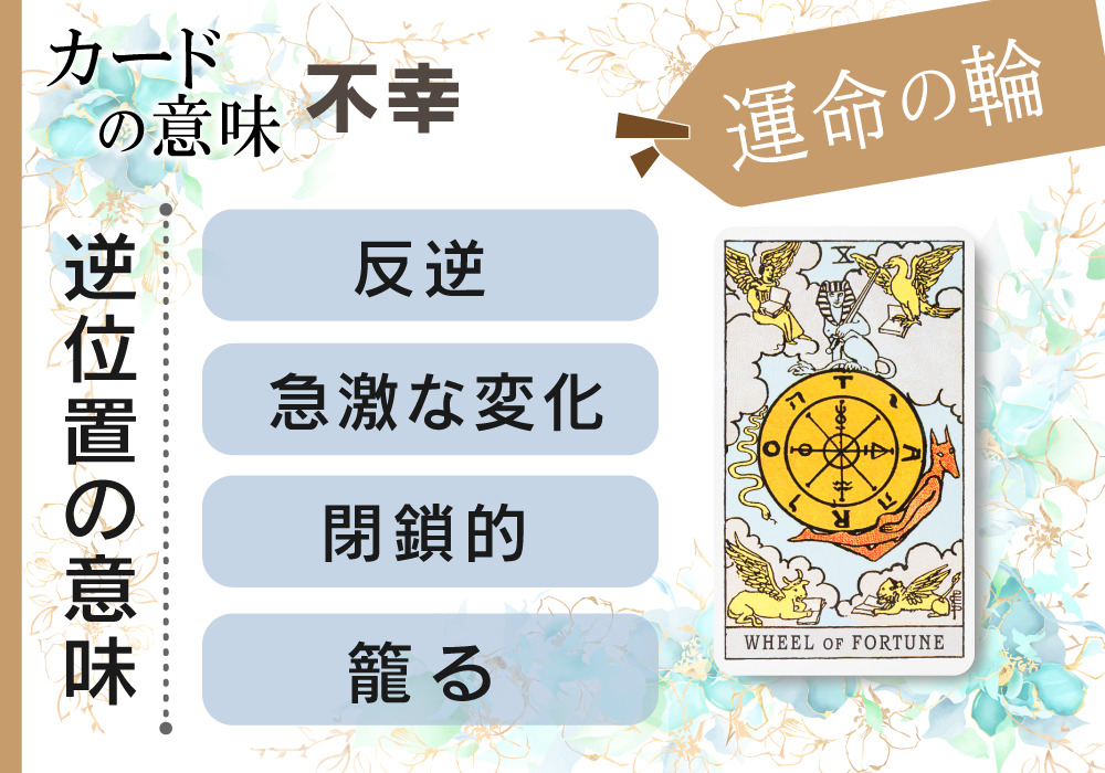 - 3 タロットカード10.運命の輪の逆位置の基本的な意味は「不幸」