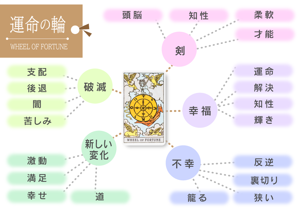 - 2 タロットカード10.運命の輪の正位置の基本的な意味は「幸福」