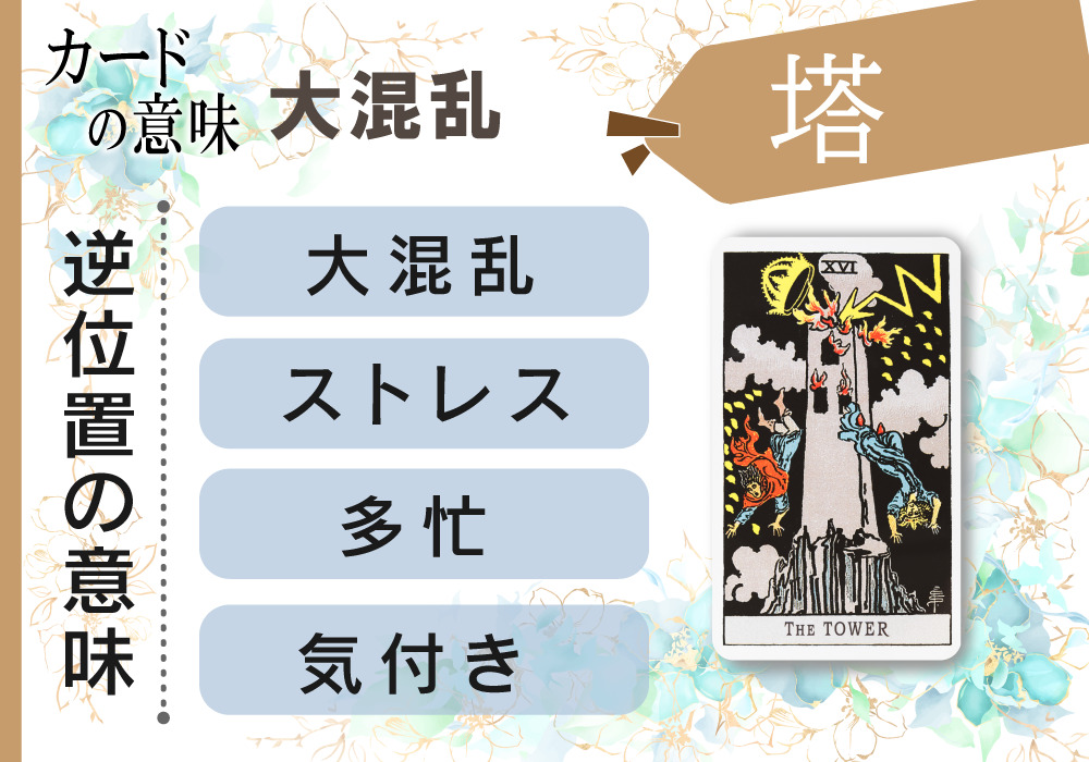 - 3 タロットカード|16.塔(the tower)の逆位置の基本的な意味は「大混乱」