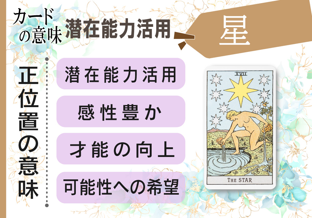 - 2 タロットカード|17.星(the star)の正位置の基本的な意味は「潜在能力活用」
