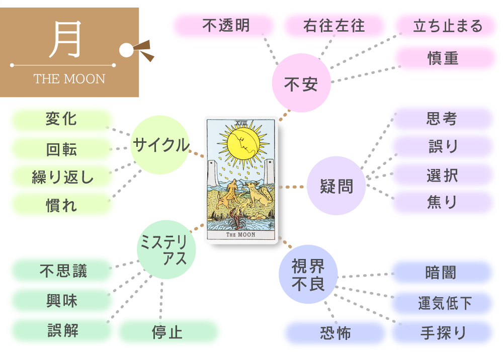 - 2 タロットカード|18.月(the moon)の正位置の基本的な意味は「慎重になる時」