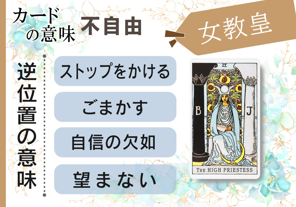 - 3 タロットカード2.女教皇の逆位置の基本的な意味は「制御」