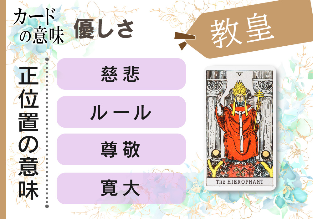 - 2 タロットカード5.教皇の正位置の基本的な意味は「優しさ」