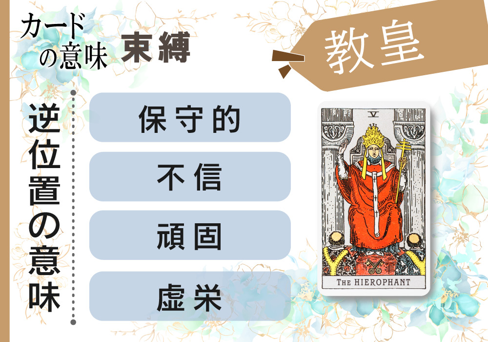 - 3 タロットカード5.教皇の逆位置の基本的な意味は「束縛」