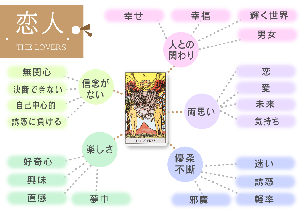 - 5 タロットカード6.恋人の逆位置から読み解く人物像や性格