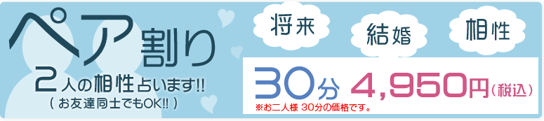 | 料金 | 1分400円 ※初回最大3,000円分無料お試し鑑定クーポンがあります。 ※当月限定GET!!今ならトリプルポイント総額6,000円分無料プレゼントキャンペーン中! |