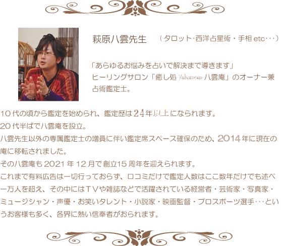 - 6 占い癒し処八雲庵の萩原八雲(はぎわらやくも)先生